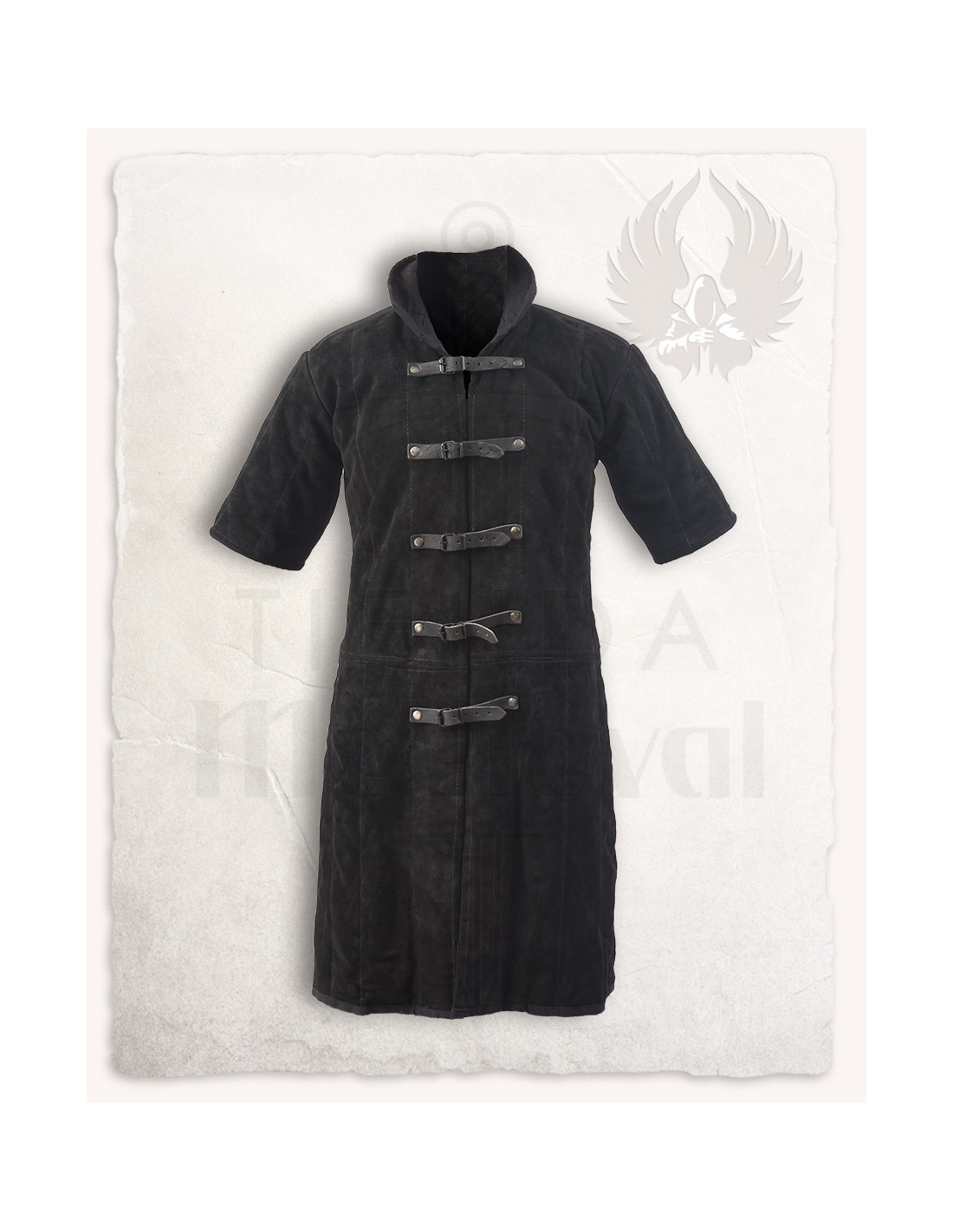 Seu corte clássico e o amplo acolchoado permitem usá-lo junto com uma camiseta de malha ou sozinho, servindo como base para diferentes conceitos de armadura ou até mesmo como peça exterior em eventos históricos ou cosplay. As mangas curtas e a abertura na parte traseira facilitam os movimentos, garantindo que você possa lutar ou se mover sem restrições.
