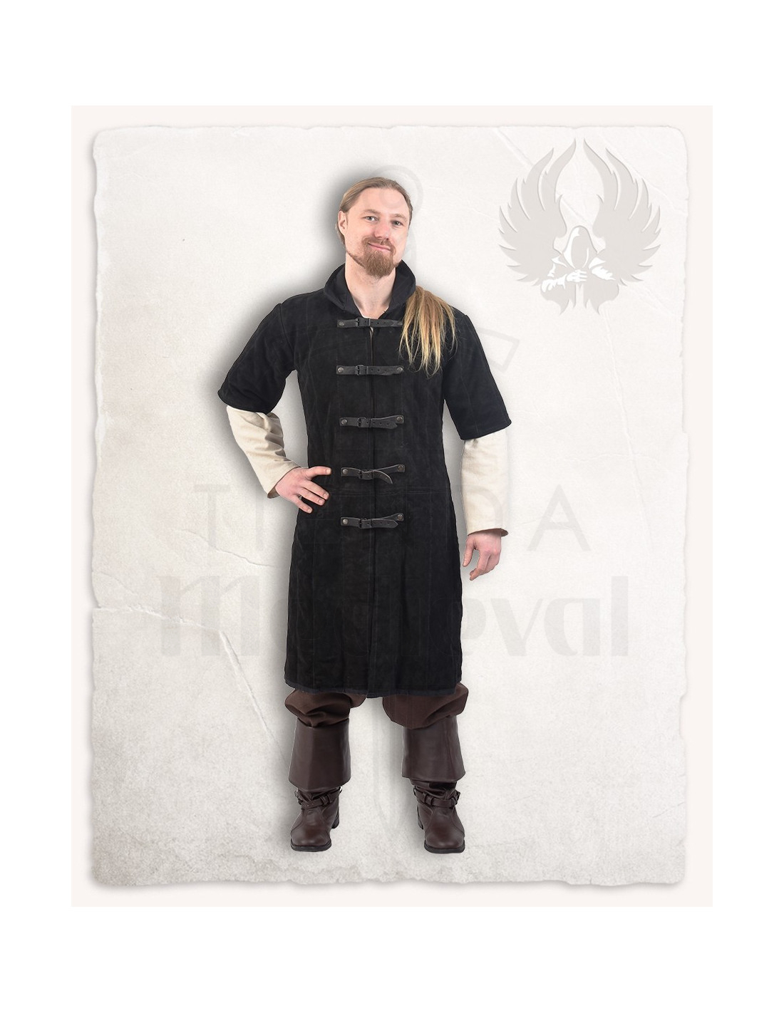 Está procurando uma peça que combine proteção e estilo em suas recriações medievais? Este gambesão em camurça preta, modelo Leopold, é a escolha perfeita para você se sentir preparado em cada aventura, sem abrir mão do conforto ou de uma aparência autêntica.