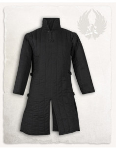 A combinação de resistência do tecido e o enchimento estruturado faz com que a peça resista ao desgaste e mantenha sua forma ao longo do tempo, ideal como base para trabalhos de restauração, eventos, ou para quem busca uma peça confiável em lutas históricas. Sua cor preta facilita combinações sóbrias e versáteis com diferentes estilos de armaduras ou vestuário.