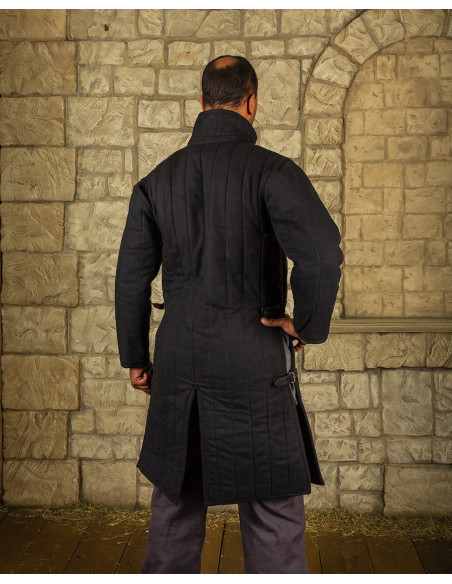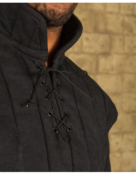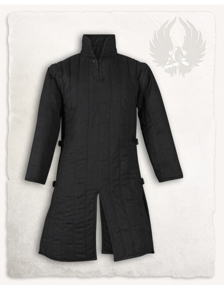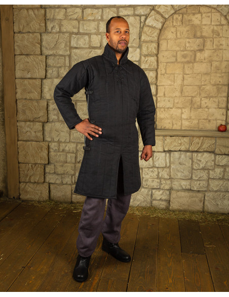 Gambesão medieval acolchoado modelo Burkhard, cor preta