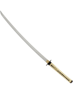 O Kei-Ben torna-se no teu companheiro de batalha, ajudando-te a consolidar a unidade de corpo, mente e espada — essa chamada *Ki-Ken-Tai-Ichi* — que define os verdadeiros praticantes da arte marcial. A lâmina em aço inoxidável forjado à mão, robusta e segura, garante um desempenho sem igual e duradouro, sem sacrificar a estética nem a funcionalidade. O entalhe (Bo-Hi) oferece uma segurança que te permite treinar sem medo, concentrado apenas em aprimorar cada técnica. A empunhadura, envolvida em pele de raya e madeira, oferece uma pega firme, confortável, que responde a cada movimento, enquanto o cordão de algodão acrescenta esse toque de autenticidade tradicional que faz com que te sintas conectado às raízes da arte. Detalhes como a Tsuba floral em liga de zinco-alumínio ou os Menukis em forma de Mitsudomoe na empunhadura, convertem esta peça numa obra de arte que reflete a disciplina e beleza das artes marciais. Cada elemento foi pensado para que o teu treino seja mais intenso, seguro e autêntico, elevando a tua intensidade e técnica a níveis que até então só imaginavas.
