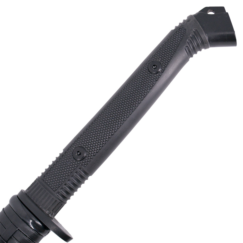 - Lâmina em Aço Carbono 1065: A lâmina de 70 cm é fabricada em aço carbono 1065, o que lhe confere resistência e durabilidade. A lâmina vem afiada e com acabamento em preto, permitindo praticar movimentos precisos.