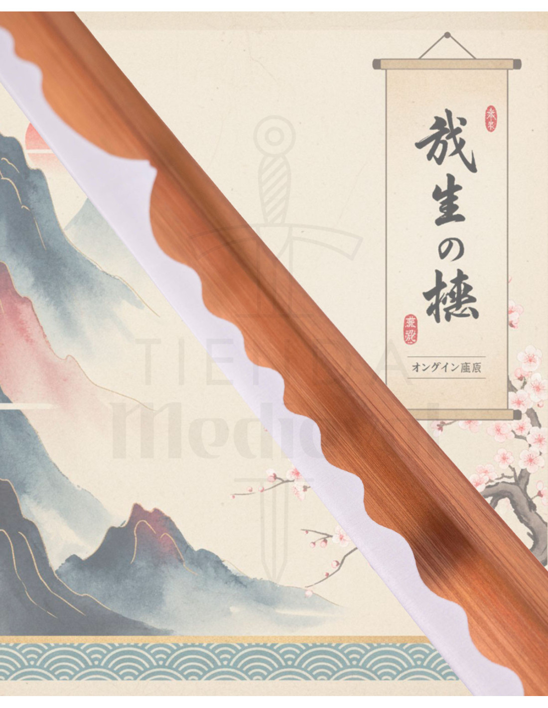 Imagine uma peça que combina a estética tradicional japonesa com o desempenho real, pronta para exibir com orgulho e funcionar com eficácia quando necessário. Esta katana apresenta uma lâmina curva com um padrão ondulado distinto ao longo da aresta, transmitindo tanto beleza quanto uma sensação de corte controlado e afiado.