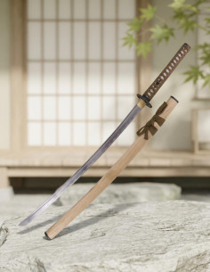 Projetada não só para treinar, mas também para inspirar, esta katana destaca-se pela sua lâmina marcada, que te permite aperfeiçoar cada movimento sem riscos. A bainha de madeira lacada reflete o compromisso com a autenticidade, enquanto que a tsuba de substituição convida-te a personalizar o teu estilo e sentir-te com controlo total da tua própria história. O suporte, além disso, oferece-te um espaço para exibir com orgulho toda a dedicação que define quem és. Não está afiada, pensando na tua segurança e na preservação do legado, pronta para acompanhar-te em cada sessão e transformar-te no guerreiro que decides ser.