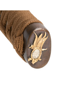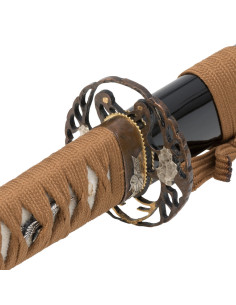 Construída com maestria, nossa katana possui uma lâmina forjada à mão em aço carbono 1045, com um delicado hamon e hi (canal) para reduzir o peso total. A sua tsuba apresenta uma majestosa garça que envolve a espada, transmitindo elegância e bom presságio. O cabo (tsuka), feito de madeira e revestido com pele genuína de peixe, oferece uma pegada confortável e segura, potencializada pelos dois menukis que o adornam. Além disso, seu tradicional envoltório de algodão marrom dá um toque de autenticidade inigualável.