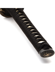 O Shogun Tsuru Katana distingue-se pelos detalhes ornamentais: o tsuba, a gola e o pomo apresentam a garça, símbolo japonês de boa sorte, longevidade e paz. Esses elementos, feitos de latão com acabamento envelhecido, acrescentam um toque de elegância e significado à katana. O cabo, feito de pele genuína de arraia e enrolado em cordão, proporciona uma pegada firme e confortável.