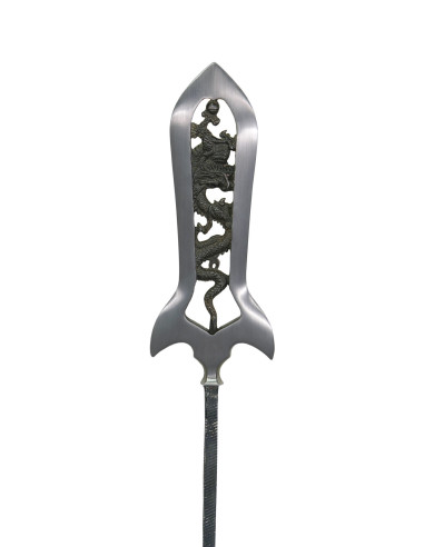 Descubra a impressionante Long Rune Spear em látex para LARP, com comprimento total de 250 cm, desenhada pela Epic Armory. Esta formidável arma não se destaca apenas pelo seu tamanho, mas também pelo seu design detalhado, tornando-se uma peça essencial para qualquer aventureiro de RPG live-action.