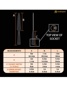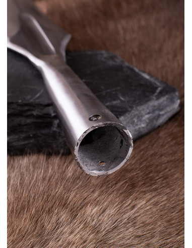 A ponta de lança vikinga de ferro, disponível em vários tamanhos, é o acessório ideal para qualquer entusiasta da história ou amante do cosplay. Fabricada com ferro de alta qualidade, conta com uma base oca para facilitar sua inserção no cabo da lança, garantindo um ajuste seguro e estável.