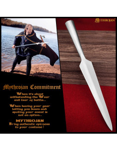 Cada ponta de lança é forjada à mão, garantindo que seja totalmente funcional e capaz de cumprir seu propósito sem decepcionar. Seu design afiado não é rombo, o que lhe confere uma aparência realista, embora se recomende não usá-la em batalhas de recriação que envolvam perfurações reais. Com esta ponta de lança, você não só obtém um acessório histórico, mas também uma peça que pode ser a protagonista de suas próximas aventuras ou recriações.