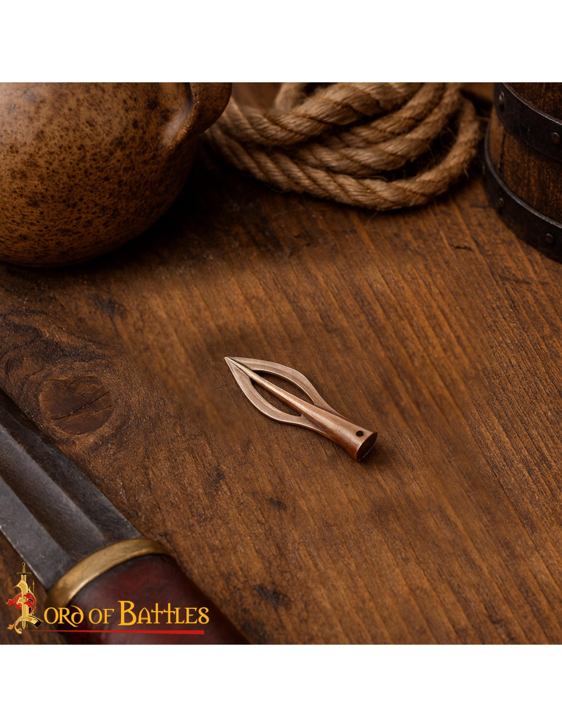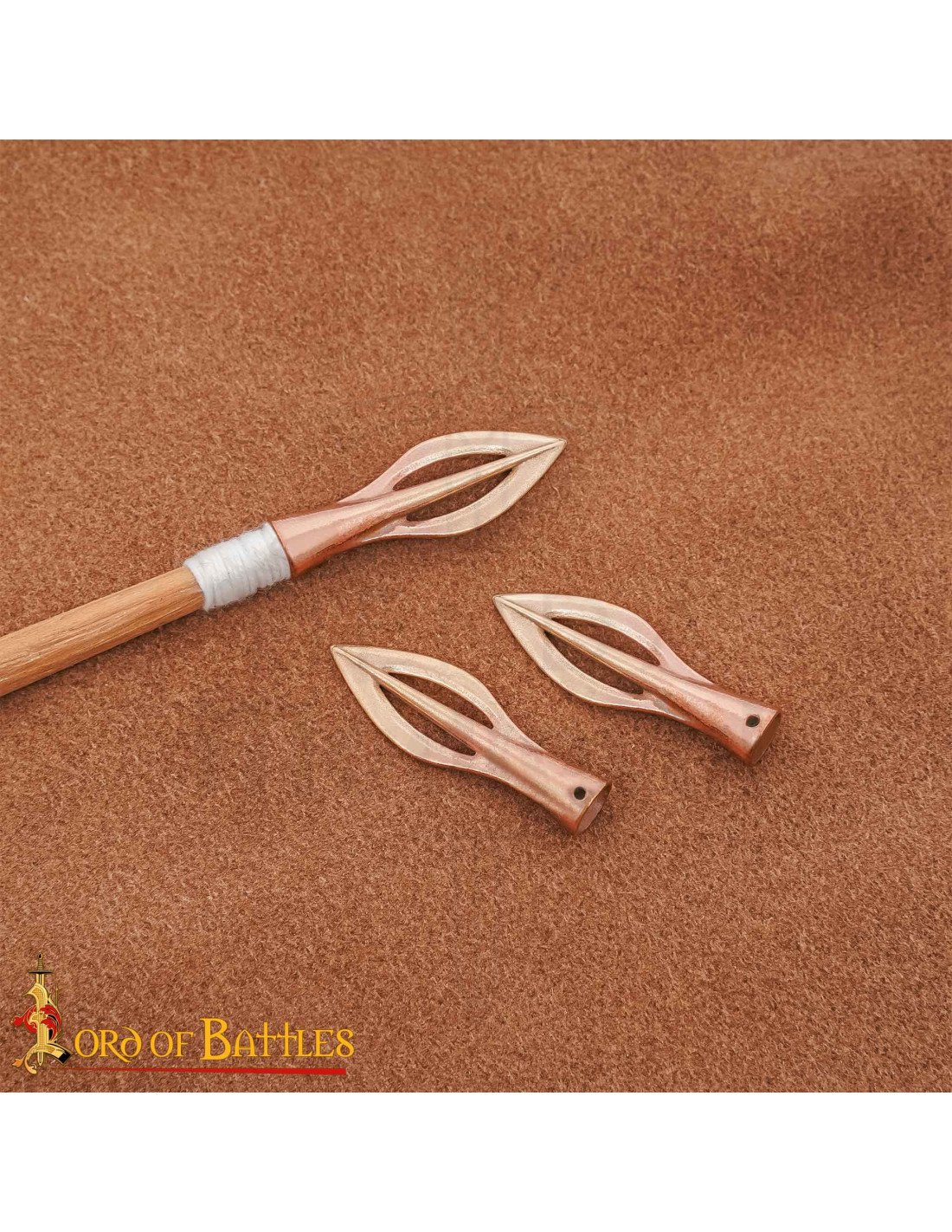 Sinta a história na palma da sua mão, uma peça que fala de estratégia, precisão e ofício antigo. Esta réplica preserva a geometria afiada e a aparência de descobertas de acampamentos e campos de batalha do Império Romano, projetada para se encaixar rapidamente e com segurança no haste, facilitando montagem ágil e um ajuste firme durante demonstrações ou reconstruções. O acabamento em bronze envelhecido proporciona aquele aspecto de museu sem abrir mão do brilho que realça os detalhes, perfeito para expor em vitrines ou para complementar recriações históricas com autenticidade visual.