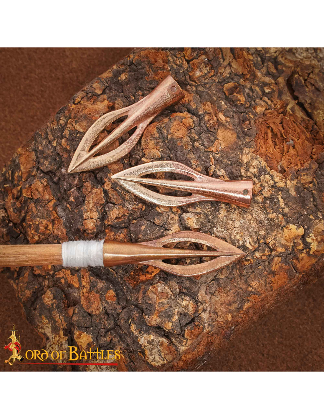 O design cônico da base e o orifício lateral facilitam uma fixação confiável ao eixo da flecha, melhorando a experiência de montagem e reduzindo o tempo de preparação durante oficinas ou demonstrações. Sua forma alongada e perfil triangular cria uma presença elegante na vitrina, e seu tamanho compacto permite integrá-la sem dificuldade em kits de reconstrução ou exposições educativas.