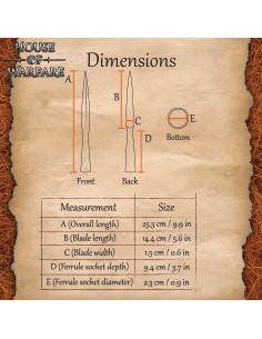 Inspirada nas armas dos séculos IX a XI, esta peça evoca a tática vikinga de lançar pontas leves antes do combate cerrado, oferecendo um vínculo tangível com essa história sem deixar de ser prática para LARP, teatro, recriações e vitrinas de colecionador.