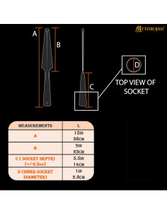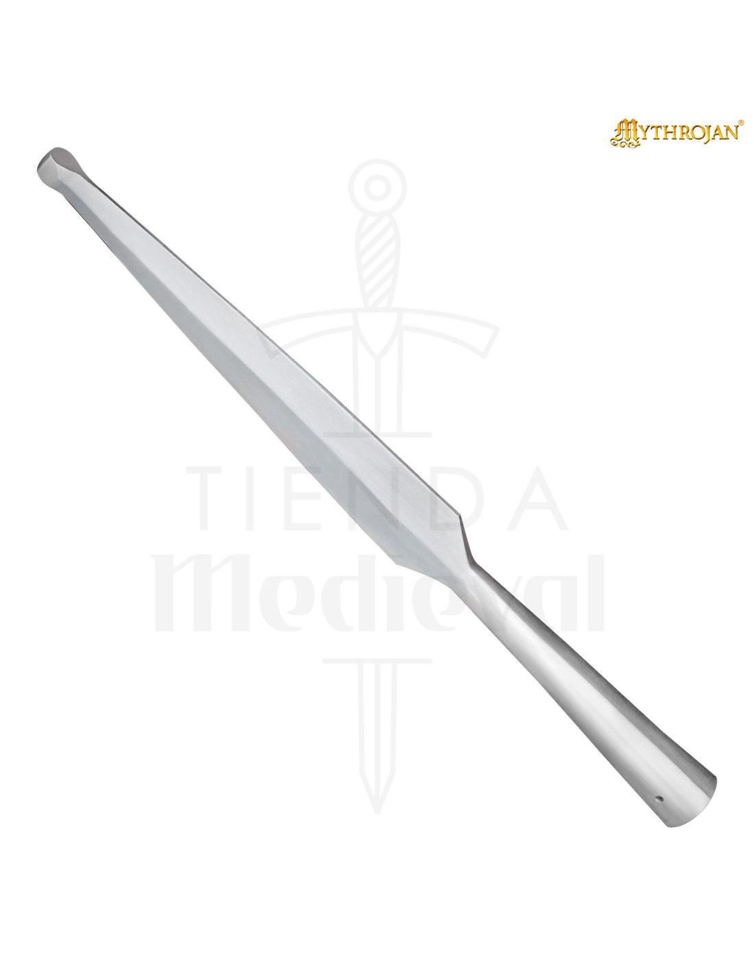 La punta roma ha sido pensada para permitir enfrentamientos controlados, apta para SCA, LARP, combate escénico y prácticas, ofreciendo seguridad sin renunciar a la sensación de impacto real. El casquillo hueco facilita el montaje en tu asta preferida, para que personalices la longitud y el estilo según tu técnica o la ambientación que persigas.