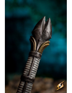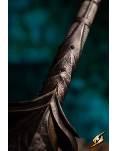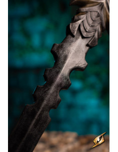 Inspirada nos elegantes elfos das terras sem sol, esta majestosa espada, conhecida como Eventide Greatsword, oferece o equilíbrio perfeito entre elegância e brutalidade. Seu punho de 11 polegadas, sem incluir a maçã do rosto em forma de pinça, proporciona controle excepcional, com o equilíbrio estrategicamente colocado logo acima da proteção estendida.
