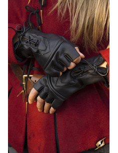 As Luvas Pícaro Fantasy em pele preta são o complemento perfeito para qualquer traje medieval. Estas luvas são feitas de couro marrom claro de alta qualidade, dando a elas uma aparência elegante e autêntica.