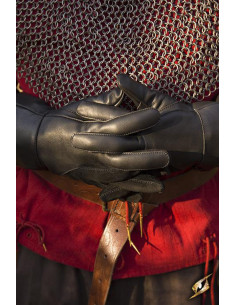 Luvas medievais Falcon, couro preto