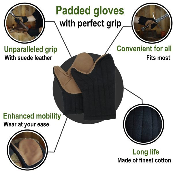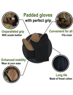 Estas luvas são feitas à mão de lona de algodão durável e camurça genuína flexível, tornando-as uma escolha perfeita para quem procura o máximo de conforto e durabilidade. Com um comprimento de aproximadamente 29 cm e uma circunferência de aproximadamente 27 cm, estas luvas cabem perfeitamente na maioria das mãos.