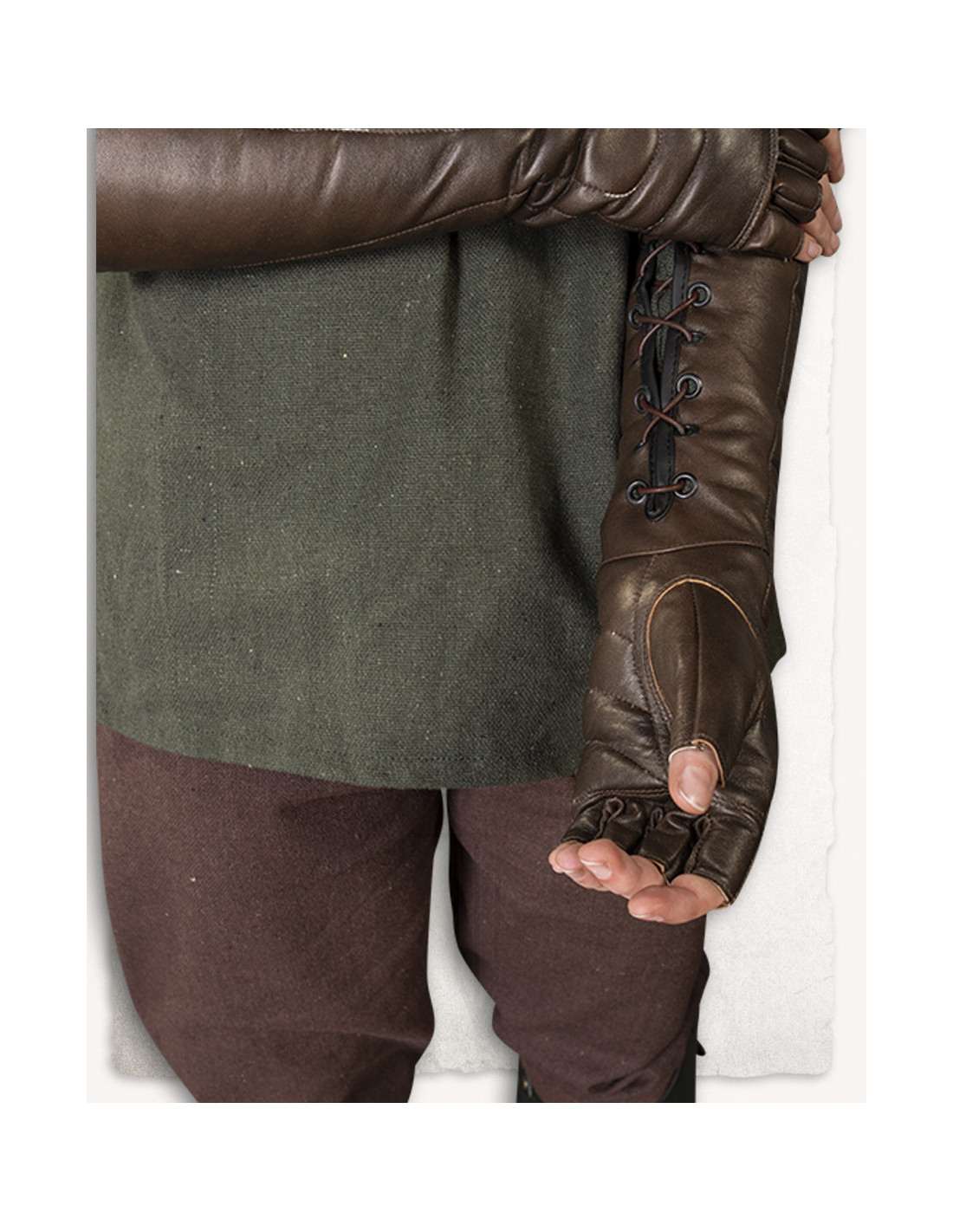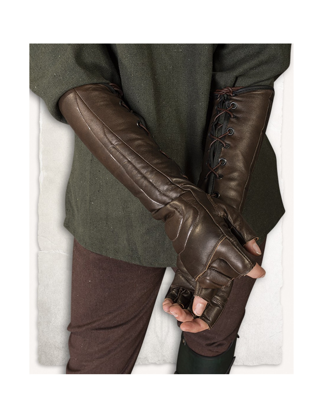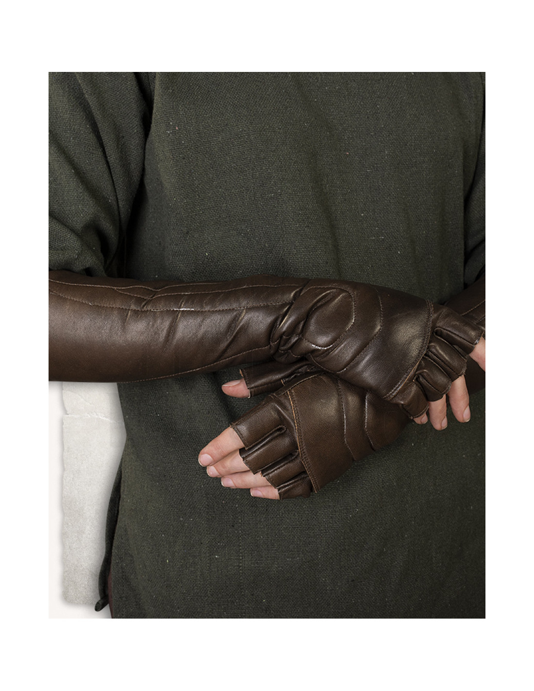 Luvas medievais sem dedos em couro modelo Gillian, cor castanho