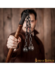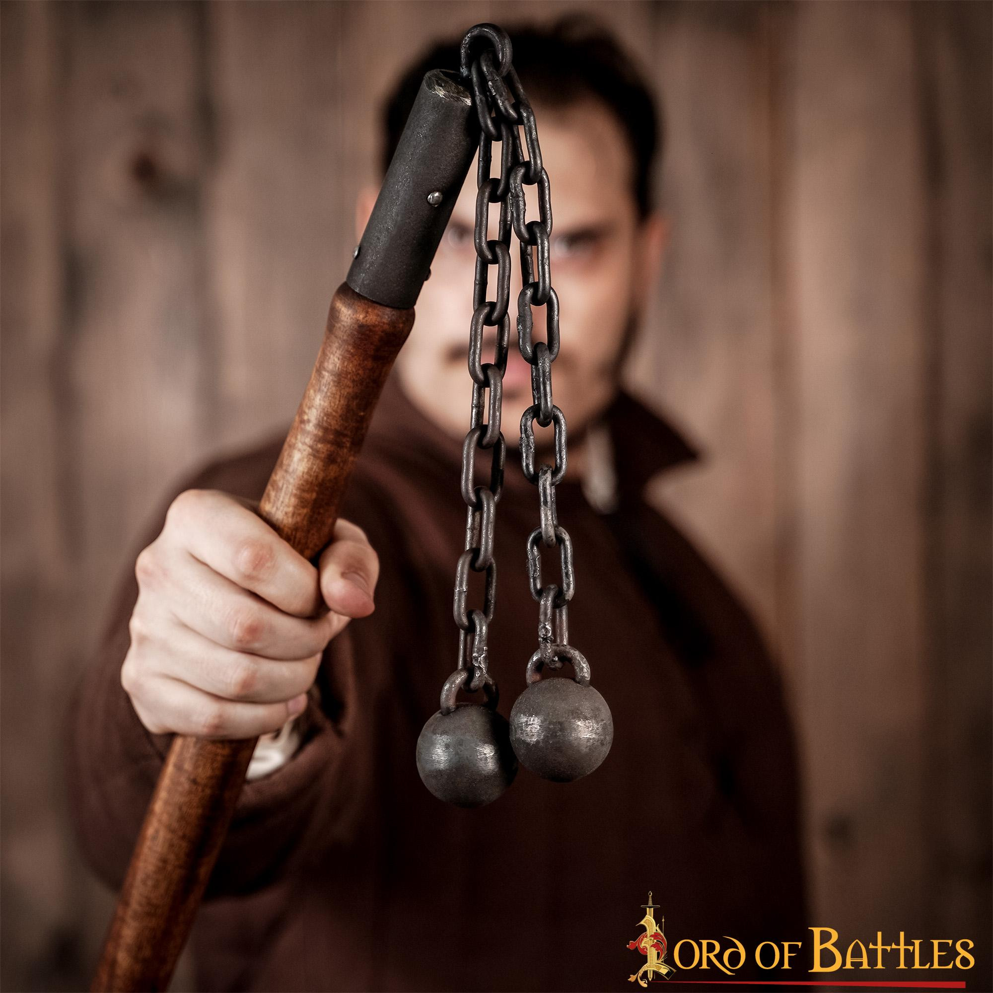 - Arma letal e autêntica: esta maça de bola dupla é perfeita para um bravo cavaleiro que luta pela justiça. Suas duas bolas de ferro forjado e sua corrente fazem dela uma arma letal e autêntica.
