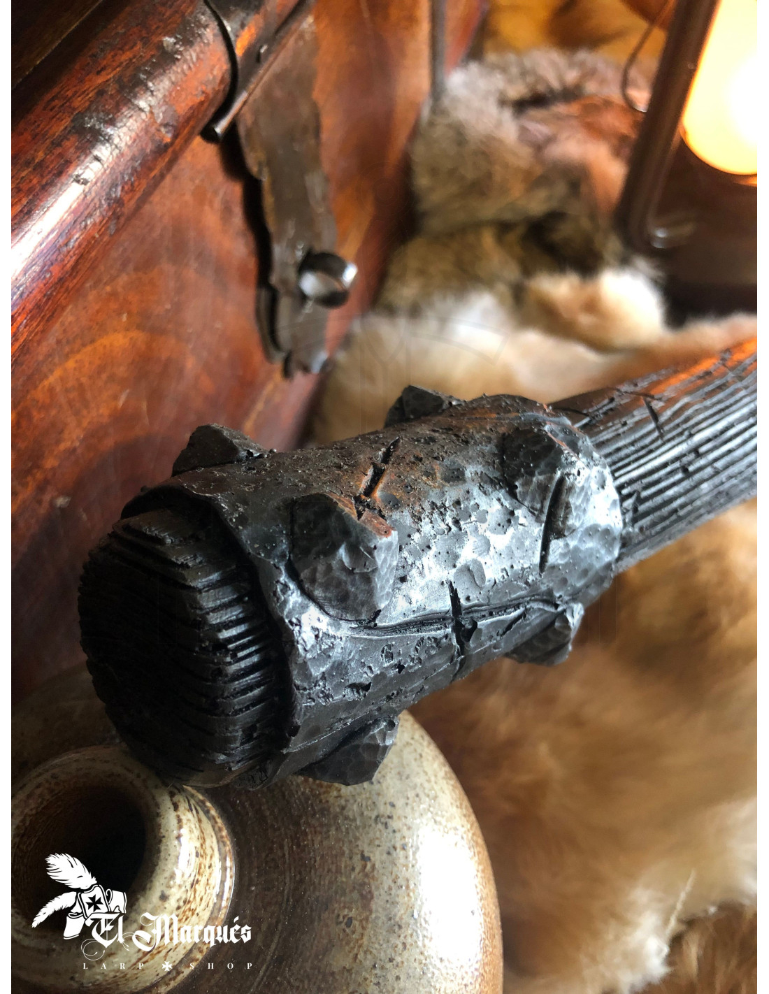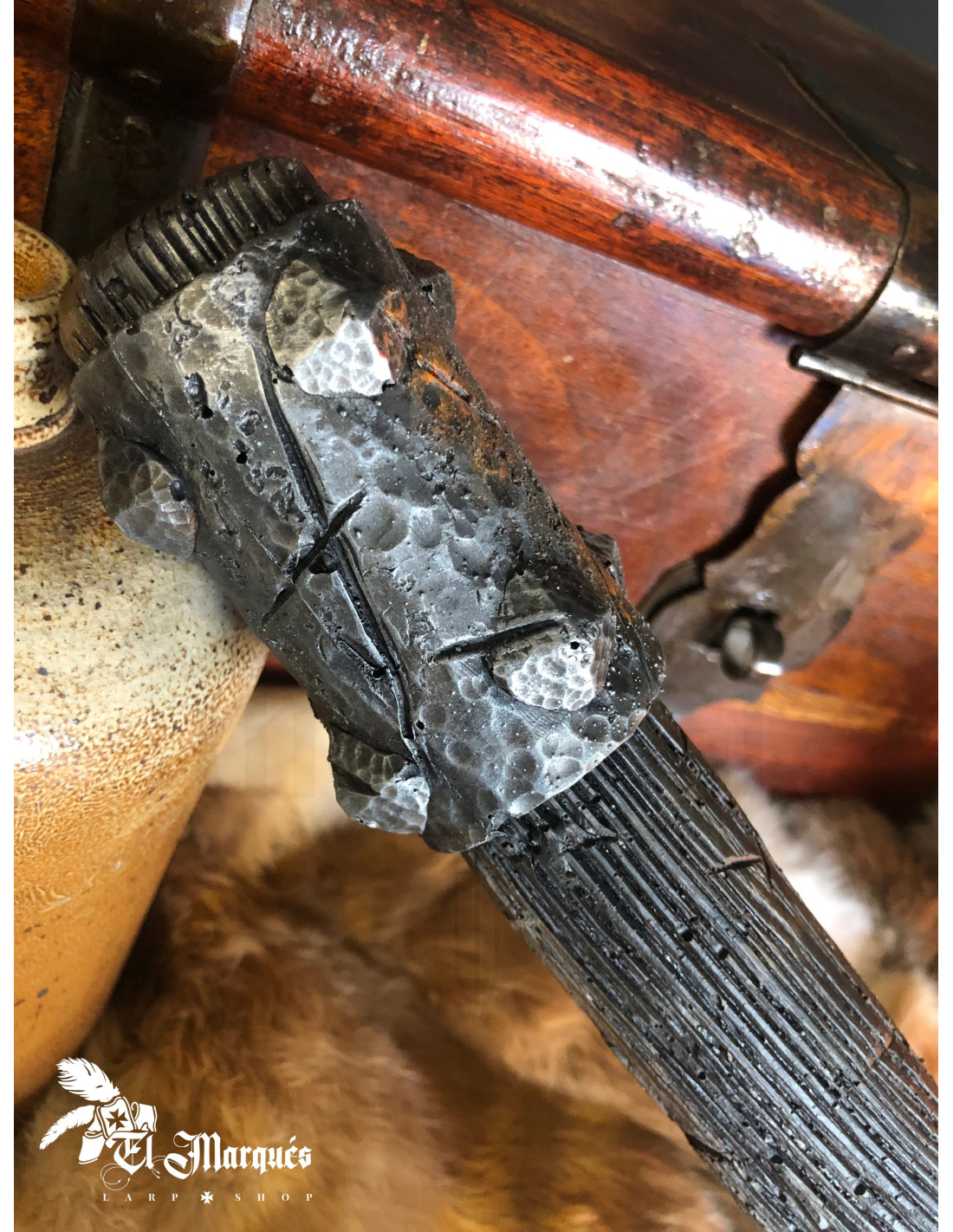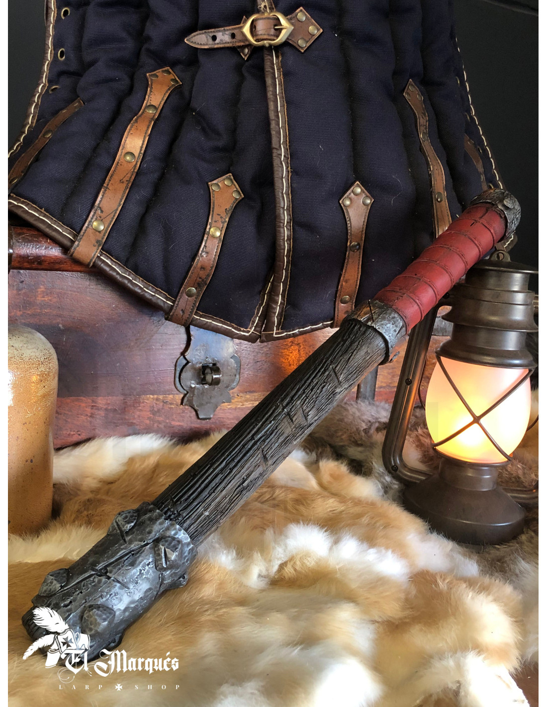 Com uma cabeça que imita o metal envelhecido e reforços no cabo que parecem aço forjado, transmite autoridade e ameaça instantaneamente, ideal para personagens como guardas implacáveis, capitães de patrulha ou vilões que precisam de uma presença convincente sem abrir mão da segurança no combate.