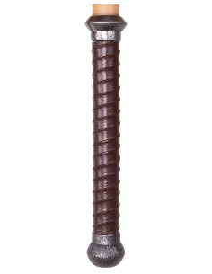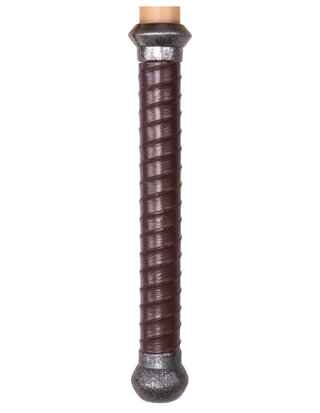 O conjunto termina com um pomo escuro arredondado que completa a estética rústica, criando uma peça coerente, pronta para sessões intensas e para complementar vestimentas medievais com um acabamento autêntico. Esta maça se destaca por sua mistura de imagem clássica e desempenho confiável.