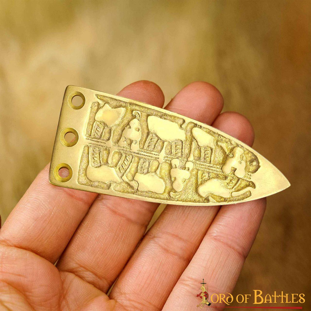 Ponta de cinto viking decorativa em latão
