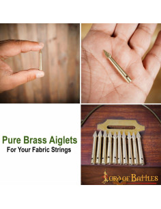 - Aplicações versáteis: Essas presilhas são ideais para complementar cordões de algodão e são comumente usadas para amarrar armaduras em gambesons ou roupas íntimas. Eles também podem ser úteis para guardar outros elementos do vestuário medieval.