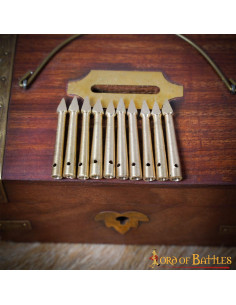O Conjunto de 10 Presilhas de Latão com Pontas de Cortiça é um conjunto de acessórios que tem diversas aplicações, especialmente no contexto da reconstituição histórica e do vestuário medieval. Aqui estão mais detalhes sobre este jogo: