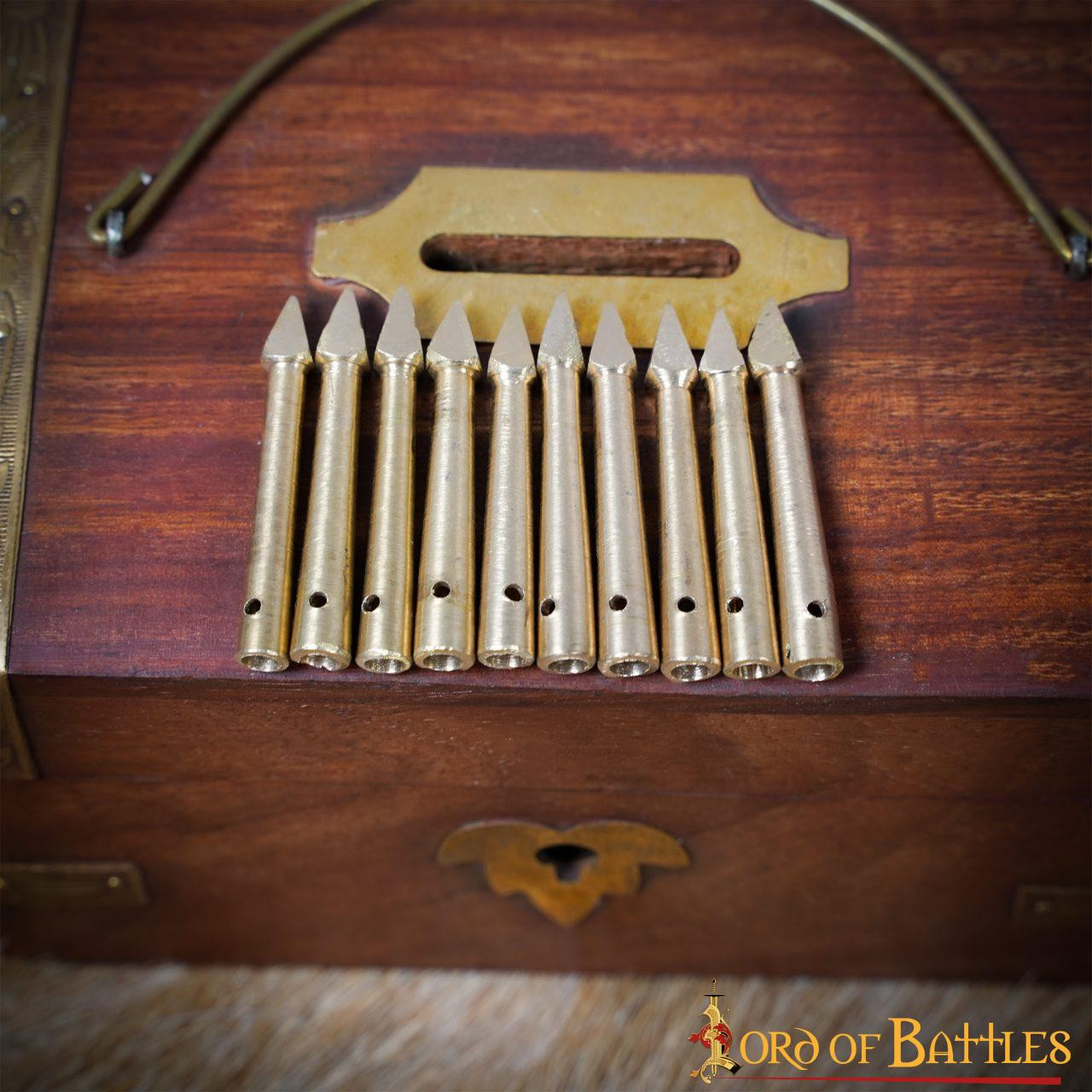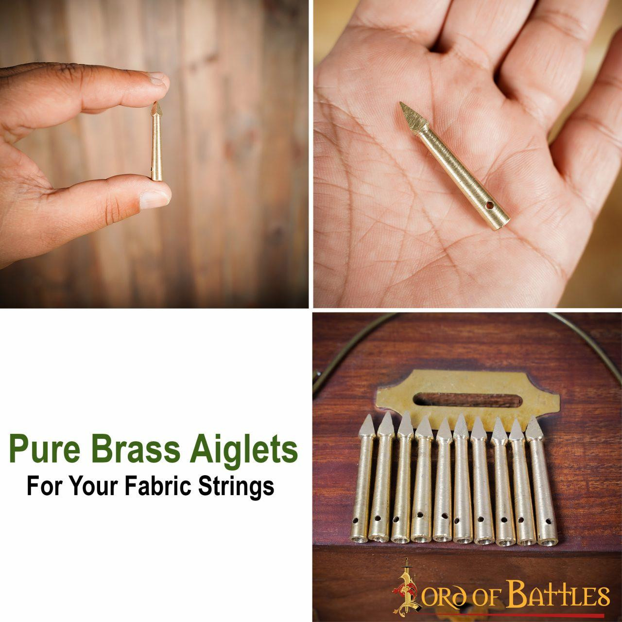 Resumindo, o Conjunto de 10 Presilhas de Latão com Pontas de Cortiça é um conjunto de acessórios versáteis e úteis para quem se interessa por reconstituição histórica, roupas medievais e cosplay. Seu material durável e design com ponta de cortiça os tornam adequados para uma variedade de aplicações, desde amarrar armaduras até adornar fantasias e roupas de época.