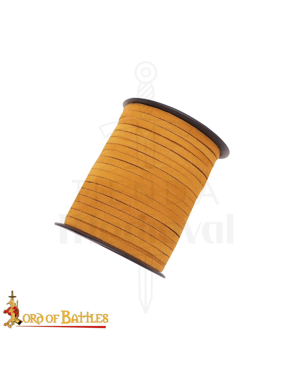 Na fotografia, a tira está enrolada de forma uniforme sobre um carretel escuro, o que facilita armazená-la e cortá-la na medida que você precisar. Sua textura tipo camurça proporciona um acabamento artesanal e sofisticado, ideal para detalhes em vestuário histórico, complementos contemporâneos ou reparos que requerem discrição e estilo.