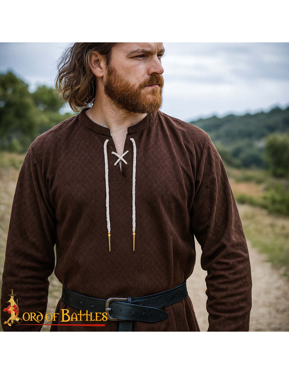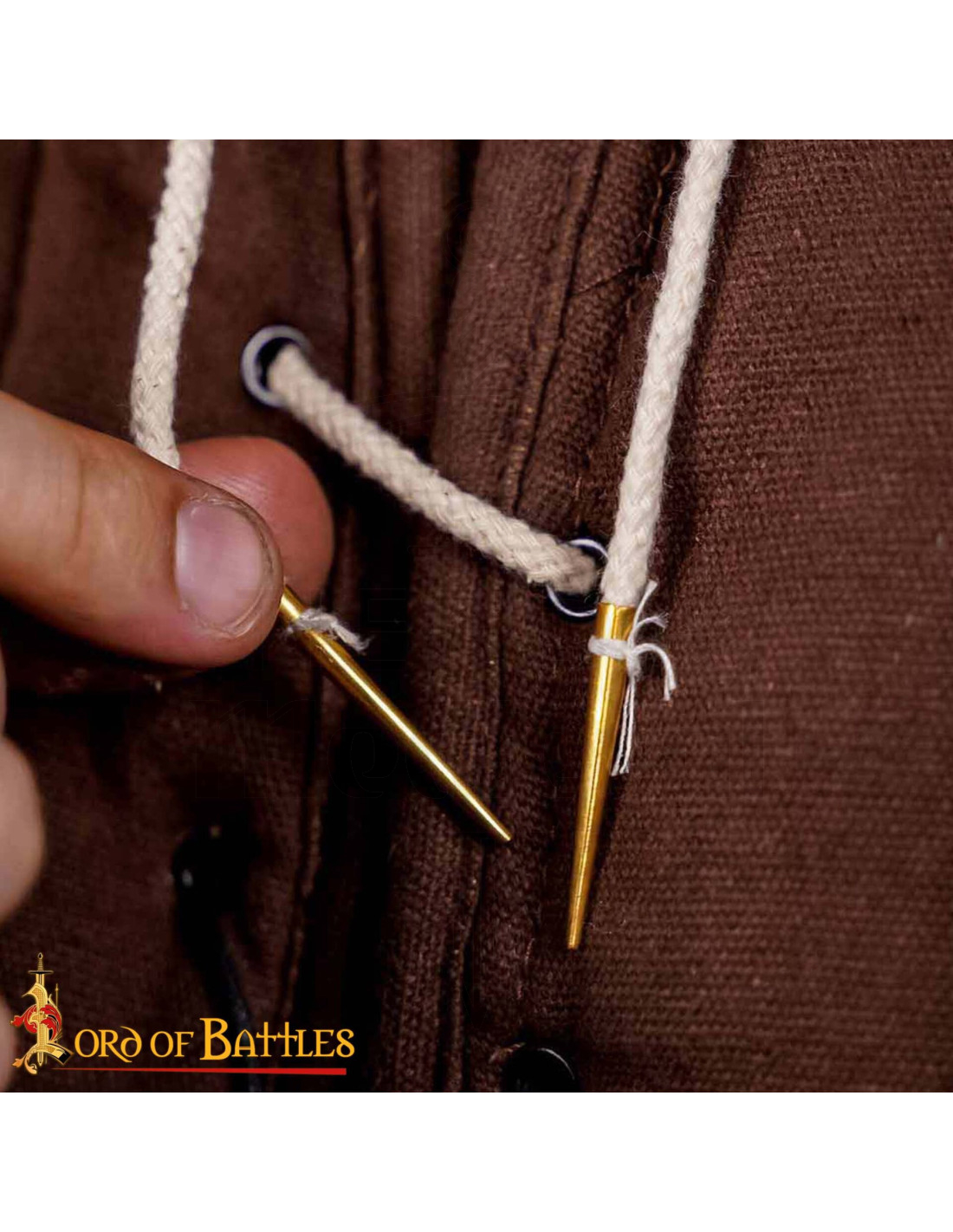 Historicamente, os terminais metálicos serviam para assegurar prendas e, ao mesmo tempo, atuar como um detalhe decorativo que diferenciava status e estilo. Este conjunto resgata essa tradição, oferecendo funcionalidade e estética para recriações, LARP ou para aqueles que apreciam o estilo medieval de forma contemporânea.