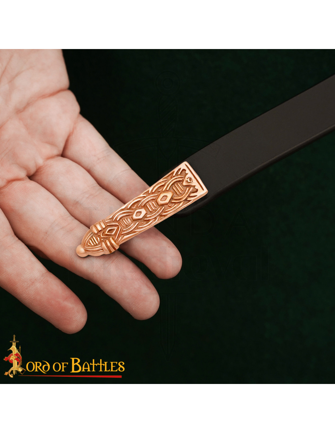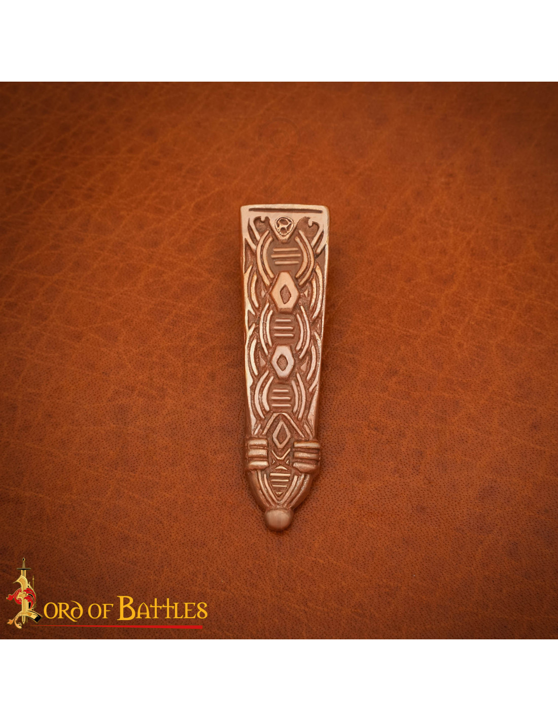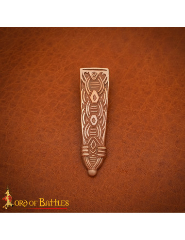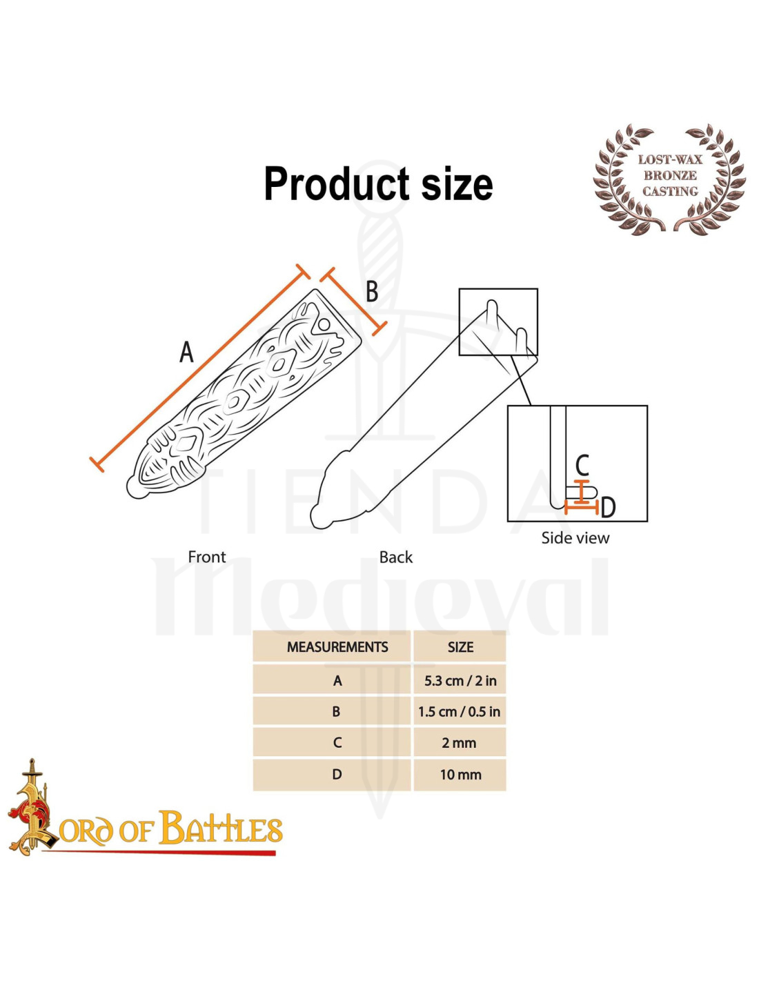 Inspirada em descobertas reais do Norte da Europa, esta ponta evoca a estética e o simbolismo da Era Viking, quando adornos como este sinalizavam status e ofício. Seu design ondulado e geométrico remete à simbologia nórdica de continuidade e proteção, trazendo autenticidade a qualquer recriação ou restauração.