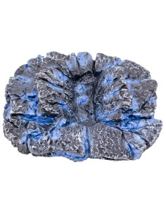 A alça, na cor marrom, foi projetada para oferecer uma pegada confortável e segura, garantindo que esta réplica não seja apenas visualmente marcante, mas também prática para quem deseja exibi-la ou utilizá-la em eventos de cosplay. O suporte em forma de rocha incluído permite que o martelo seja exibido de forma proeminente, fazendo com que pareça que foi arrancado diretamente do chão pelo próprio Thor.