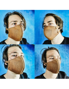 Complete seu traje com esta máscara de couro marrom, uma peça resistente, versátil e com um design imponente que fará com que seu personagem pareça autêntico e memorável.