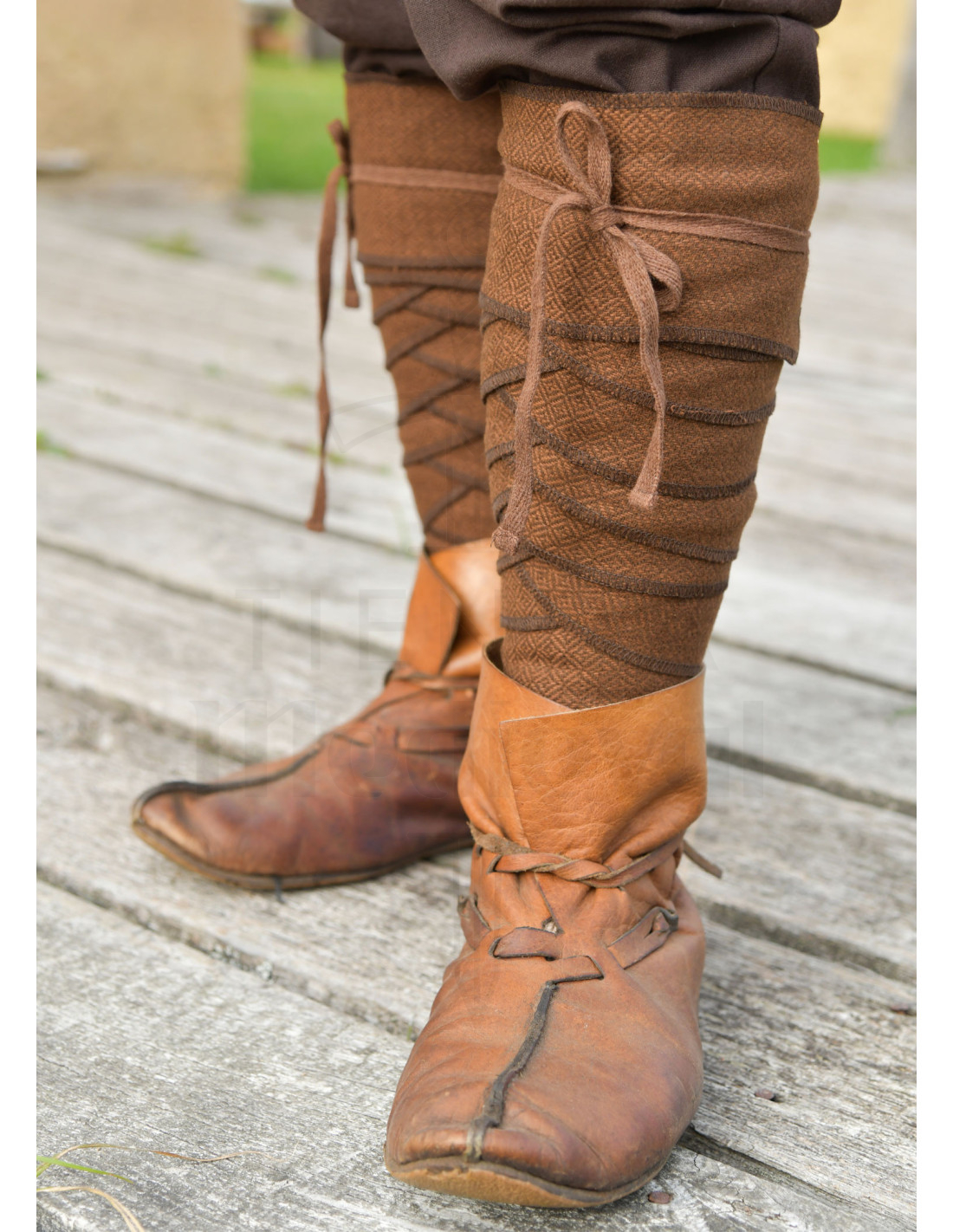 Você está procurando aquele detalhe que transforma seu traje vikingue de recriação em uma peça que fala por si só? Estas vendas enroladas chamam a atenção à primeira vista, com tons de marrom quentes e um padrão em sarja diamante que adiciona profundidade e caráter sem exageros.