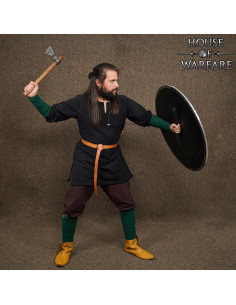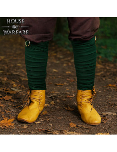 Ideais para interpretar personagens vikings ou saxões em recriações, teatro ou LARP, sua aparência autêntica e a solidez das fivelas de latão transmitem credibilidade ao personagem, sem complicações ao usá-las. O tecido 100% algodão garante um toque agradável durante todo o dia, e a cor verde escuro combina com diferentes tons de vestuário histórico.