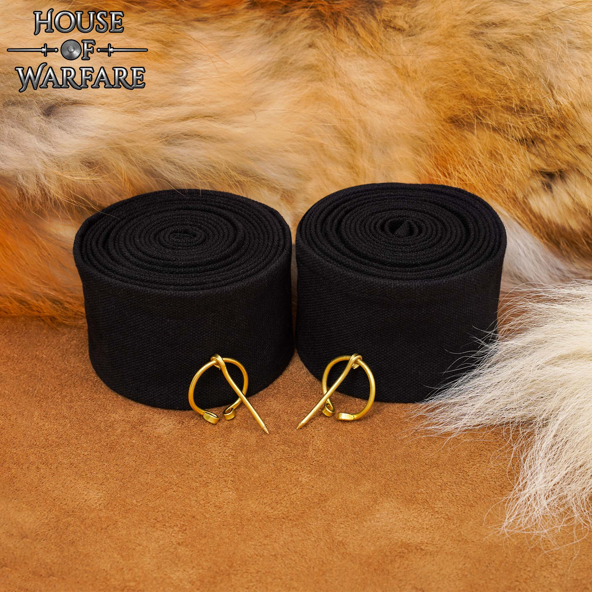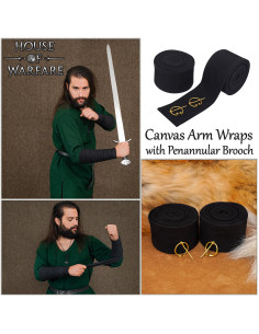 Winingas medievais em algodão preto, com fivelas de latão