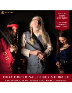 Ideal para aqueles que amam o mundo dos piratas e a navegação, este catalejo é perfeito para cosplay, eventos de LARP (live-action role-playing), steampunk ou simplesmente para desfrutar de tardes inesquecíveis com seus filhos ou netos. Também é uma excelente adição às festas temáticas de Halloween, adicionando um toque autêntico à experiência.