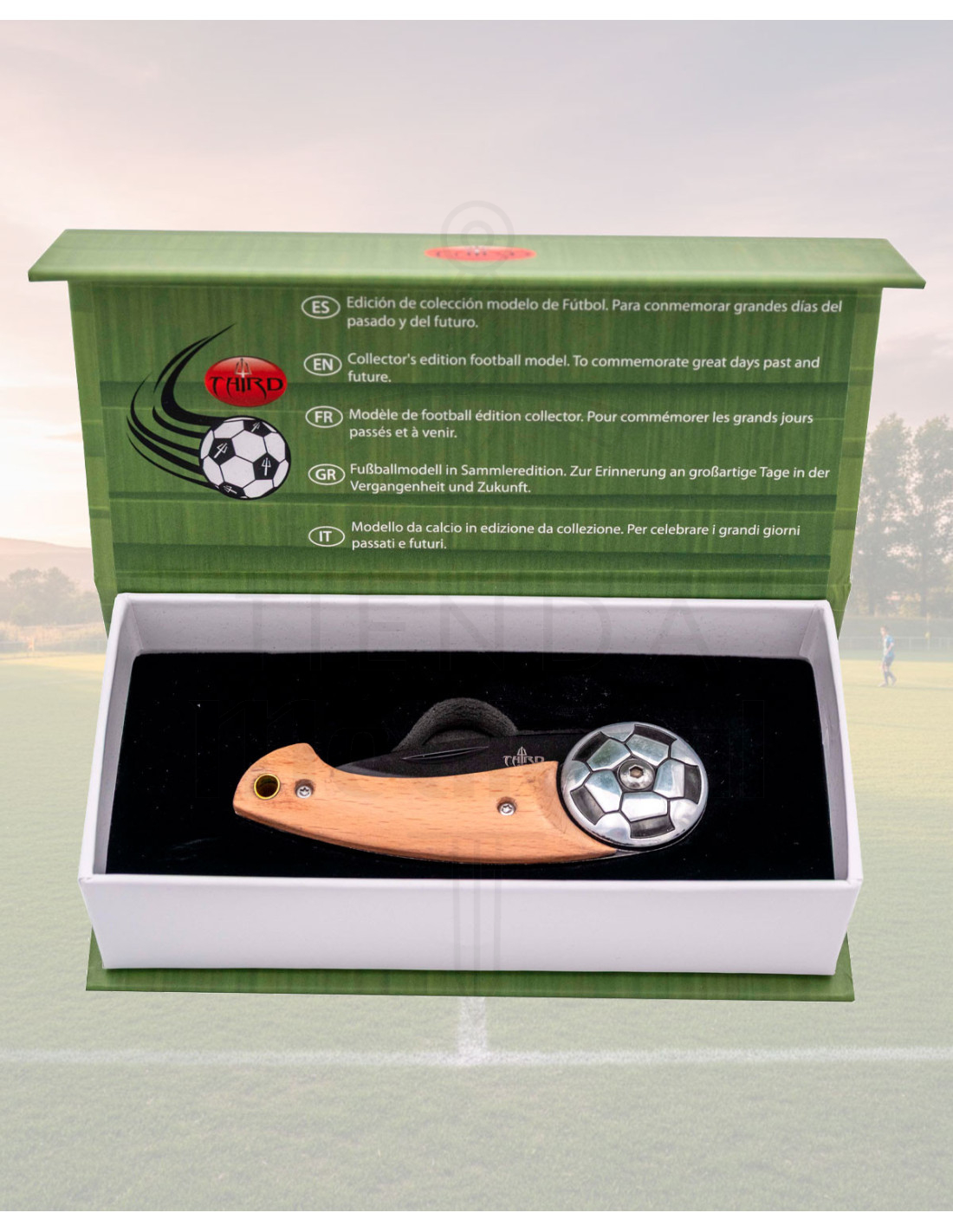 Vem apresentada em uma caixa que realça seu caráter de presente, perfeita para surpreender aficionados por futebol ou colecionadores que buscam uma peça com personalidade. Sua combinação de materiais clássicos e detalhes esportivos a torna uma opção tão funcional quanto estética.
