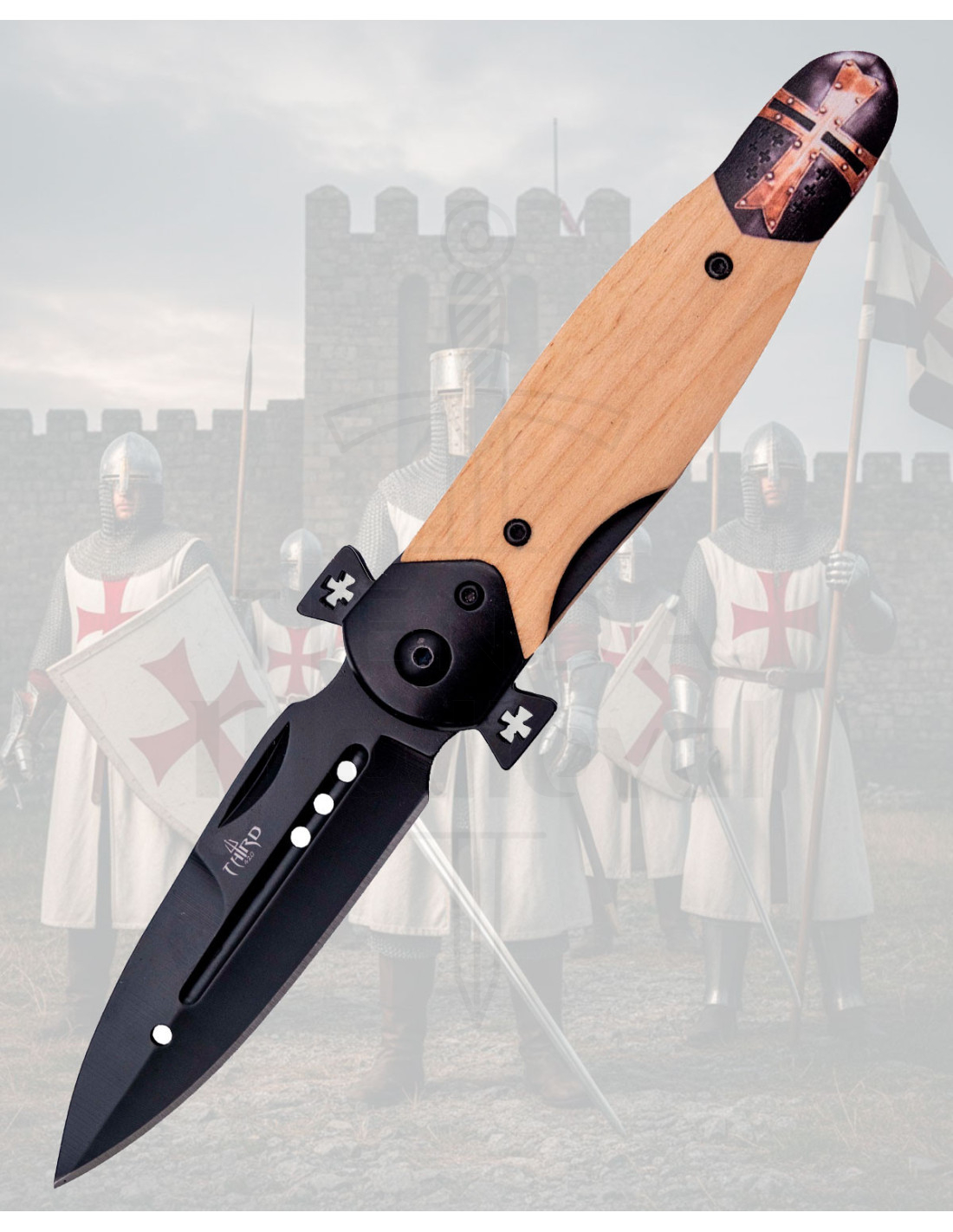 O acabamento com cruzes na virola e o detalhe superior que replica elementos templários elevam o valor estético do canivete, tornando-o uma peça ideal para colecionadores. Vem em uma caixa de apresentação, pronta para presente ou para guardar com estilo.