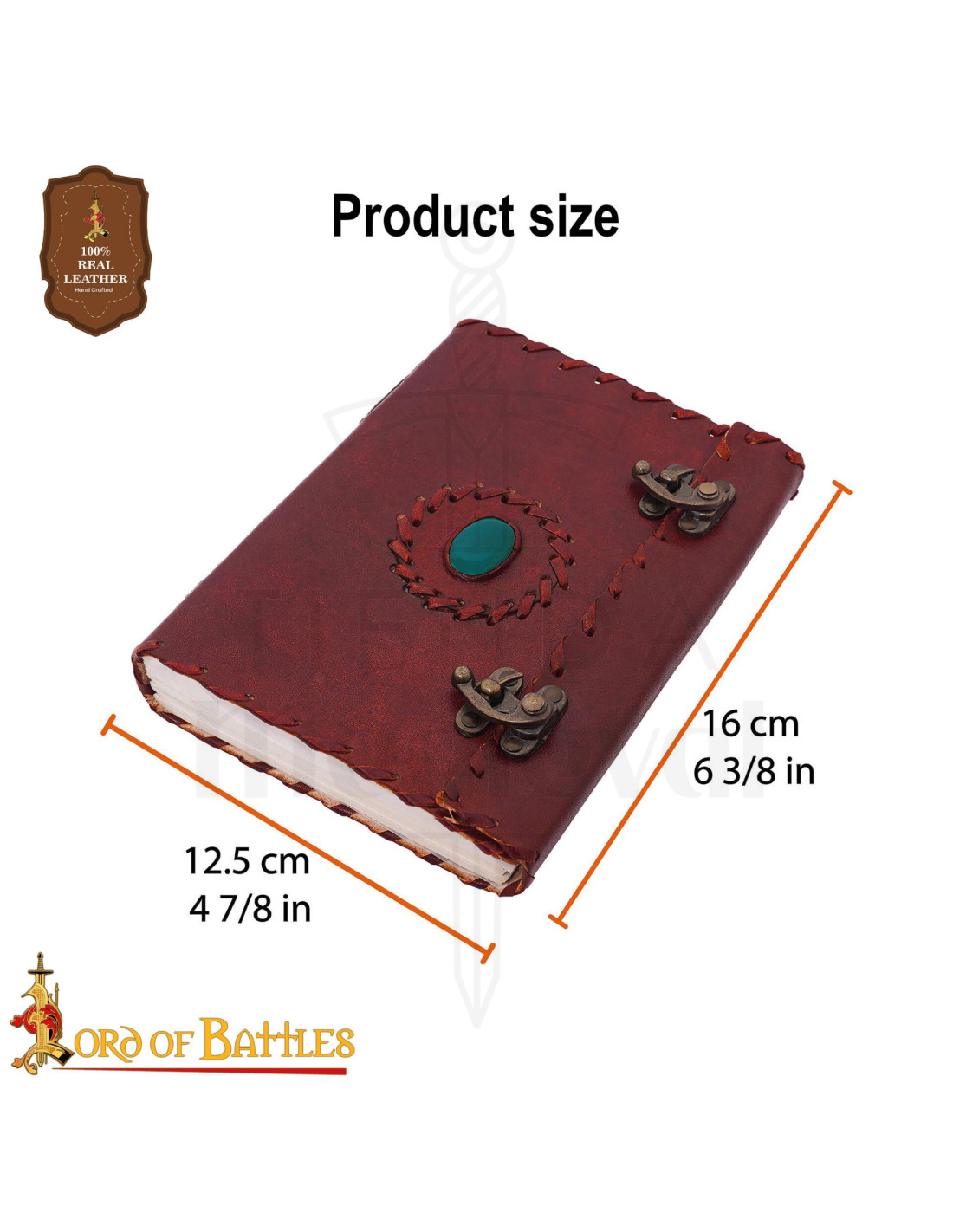 Este Diário medieval capa de couro com pedra fechos de latão destaca-se por sua presença, oferecendo uma experiência sensorial desde o primeiro contato. A capa rígida forrada em couro marrom escuro protege suas histórias, ao mesmo tempo que a superfície e a costura visível transmitem a sensação de um objeto trabalhado à mão, único e com caráter próprio. A pedra ovalada verde turquesa incrustada no centro cria um ponto focal que transforma o diário em uma peça decorativa, não apenas em uma agenda.