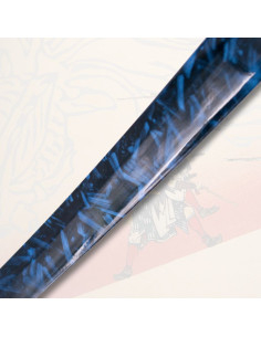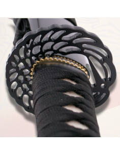 A empunhadura está envolta com uma corda preta que, além de conferir um estilo tradicional, assegura uma pegada firme e confortável. A guarda ou tsuba, com forma de cisne, não é apenas um detalhe decorativo destacado, mas também proporciona segurança e equilíbrio ao design. Acompanhada de uma bainha laqueada em preto brilhante e decorada com um delicado cisne branco, esta peça evoca simbolismo e sofisticação.