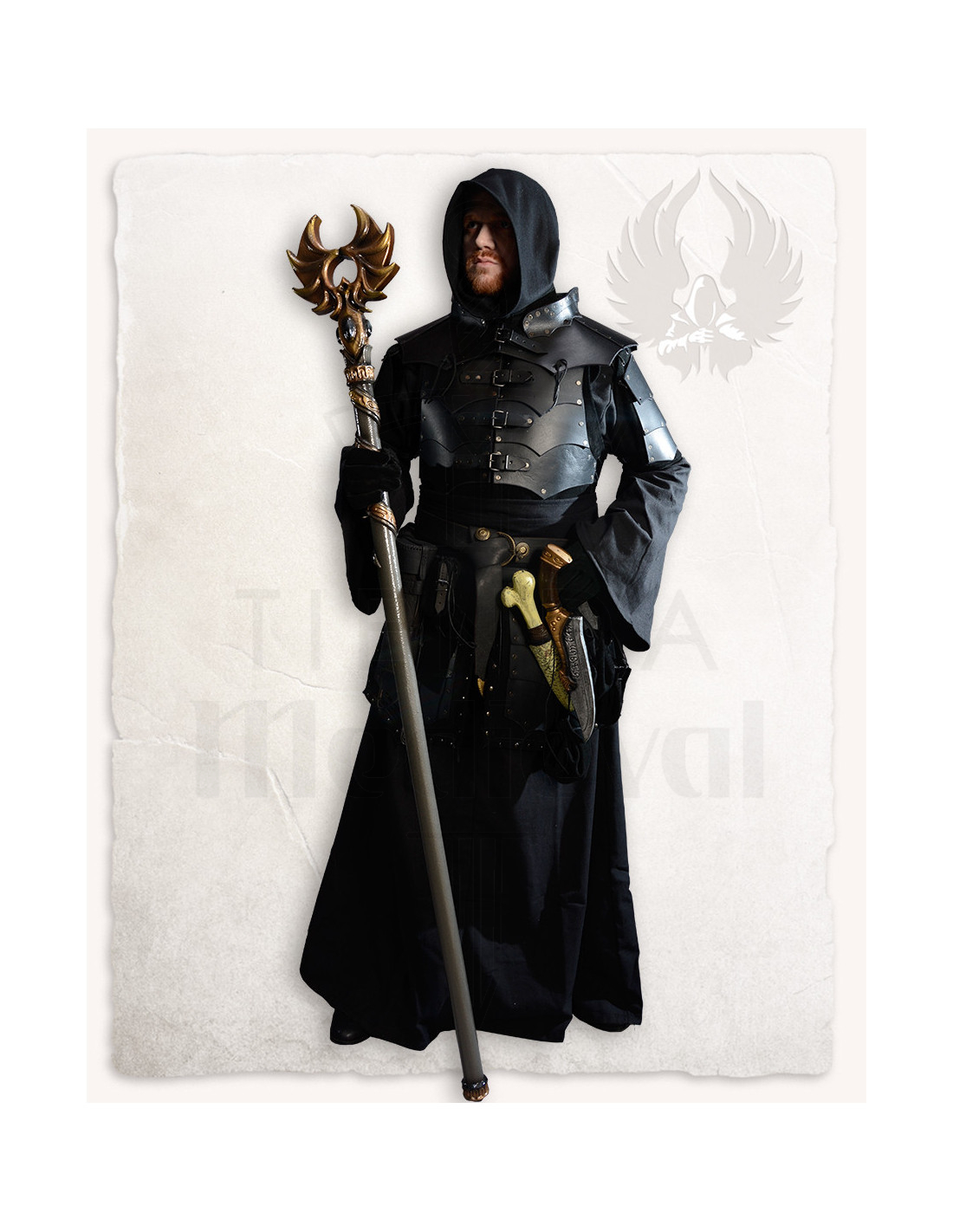 Este armário de estilo medieval ou de fantasia pode ser complementado com uma camisa de malha ou uma jaqueta acolchoada, proporcionando diferentes combinações para cada visual. Além disso, combina perfeitamente com os tassets combinados, assim como com as cotoveleiras e grevas da série, permitindo criar um conjunto completo e coerente, ideal para cosplay, recriações ou atividades de lazer.