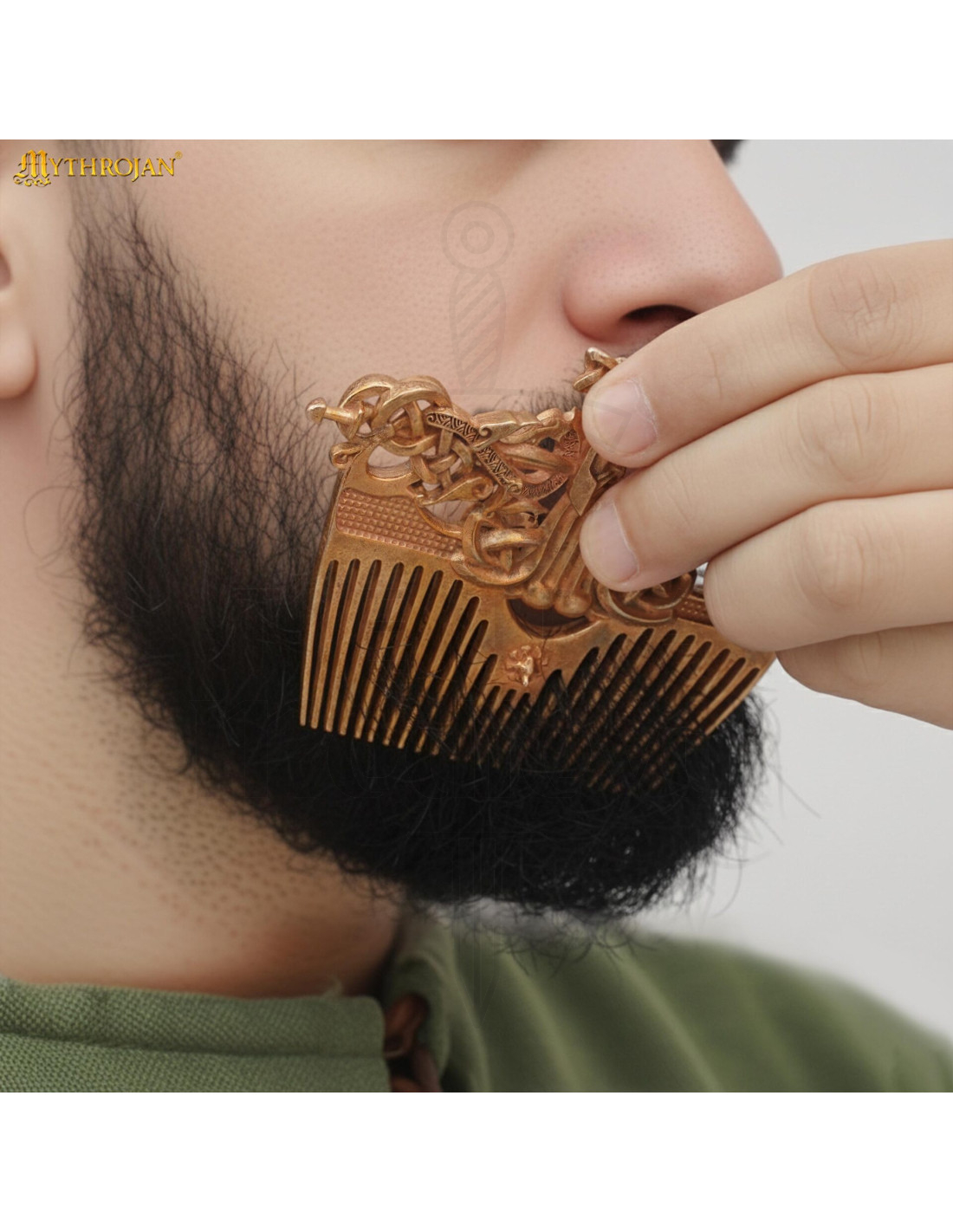 Este exemplar reproduz fielmente a tradição nórdica, fundido em bronze através da técnica ancestral de cera perdida, para preservar o detalhe e a força do original. O resultado é um pente que não apenas penteia, mas eleva sua presença: as pontas longas e finas deslizam suavemente, facilitando o penteado e mantendo o cabelo organizado sem esforço, enquanto seu equilíbrio oferece uma manipulação confortável e natural.