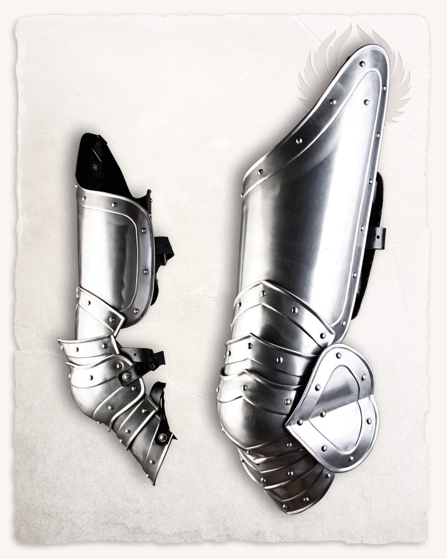 Construção Durável: Feita de aço polido, esta perna medieval combina força e elegância. O aço com 1,2 mm de espessura oferece proteção sólida contra golpes e cortes, enquanto o acabamento polido adiciona um toque de sofisticação à sua armadura.