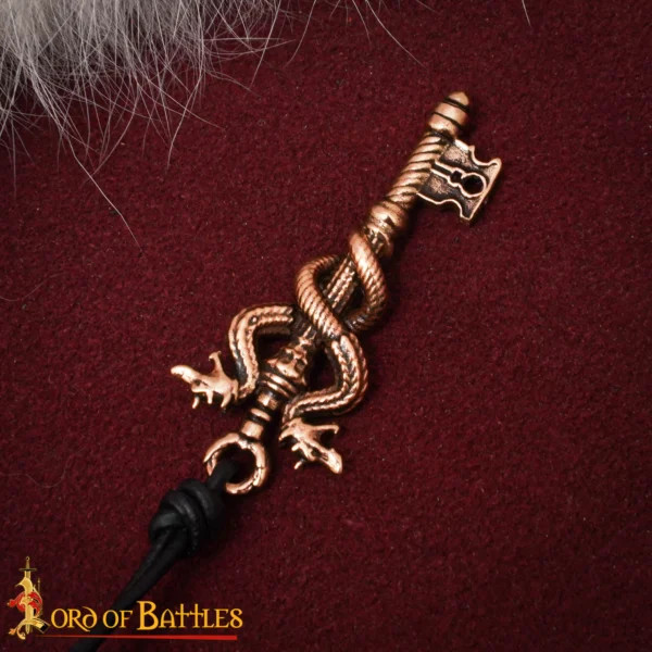 O Pingente Chave Dragão Bronze Poder Oculto evoca portas antigas e guardiões esquecidos, graças às suas duas cabeças de dragão olhando para o céu e às serpentes que se enrolam pelo seu corpo, criando um relevo tão pronunciado que parece ganhar movimento. Esse nível de detalhe transforma a peça em um protagonista visual, ideal para quem busca um acessório com presença própria, que complemente tanto trajes do dia a dia quanto looks de evento ou recriações fantásticas.