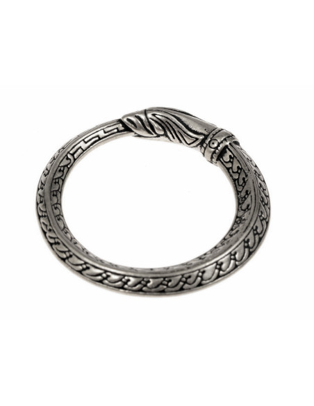 O design segue fielmente a representação escultórica da cobra do mundo, inspirada em uma pulseira encontrada no tesouro de Undrom, perto de Boteå em Ångermanland, que agora faz parte do Museu Histórico de Estocolmo. Essa referência histórica traz autenticidade, enquanto a execução em volume oferece relevo e detalhe, para que a figura seja apreciada de qualquer ângulo e se sinta tão viva ao toque quanto à vista.
