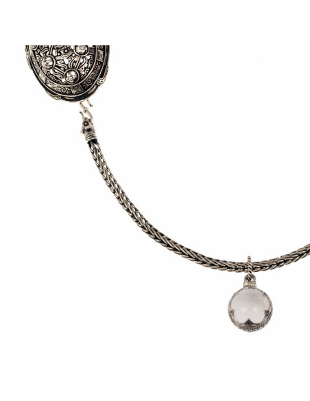 O pingente é uma esfera de cristal de rocha autêntico, polido para capturar a luz e transformá-la em um ponto de atenção discreto, mas magnético. Esteticamente concebido a partir de descobertas em Gotland, oferece uma sensação de peça arqueológica, artesanal e pronta para acompanhá-lo em qualquer ocasião.