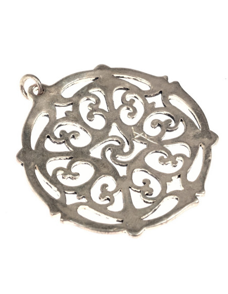 Este pingente oferece um calado tão detalhado que parece talhado à mão, trazendo uma presença elegante sem parecer pesado. O trabalho aberto permite que a peça respire com a luz, ressaltando seus volumes e transformando-a em um foco de atenção discreto, mas contundente.