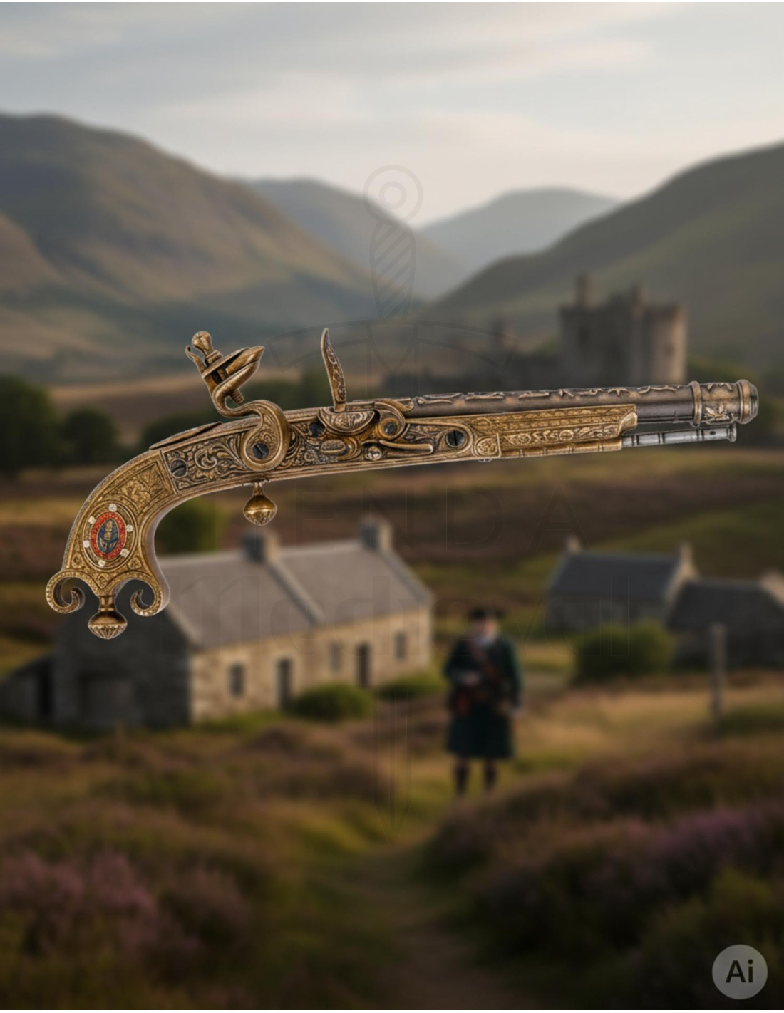 Descubra uma peça histórica que o transportará para a Escócia de 1760. Esta pistola de pederneira, fabricada pela Denix, se apresenta como uma autêntica obra de arte que combina estética, tradição e um design de colecionador que não passa despercebido. Com um acabamento envelhecido que denota seu caráter artesanal, é ideal tanto para os entusiastas da história quanto para aqueles que buscam adicionar um toque refinado à sua coleção pessoal.